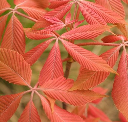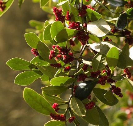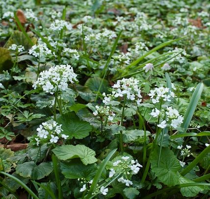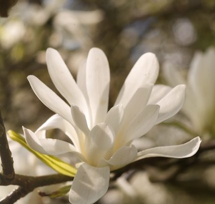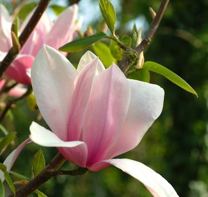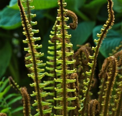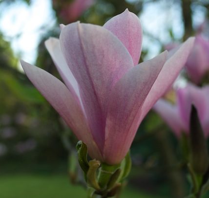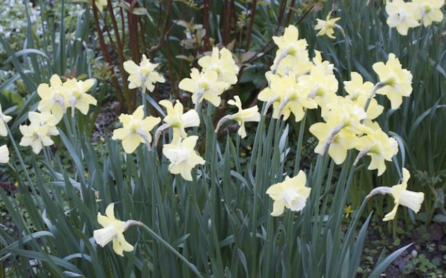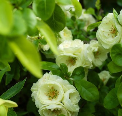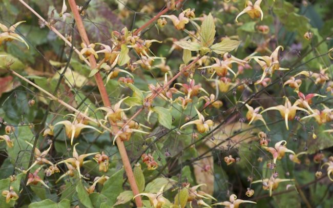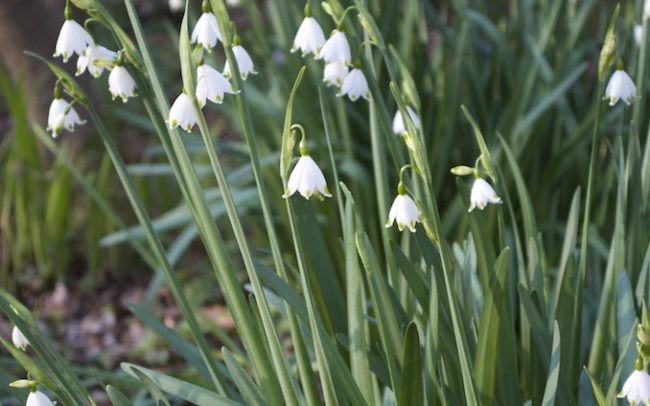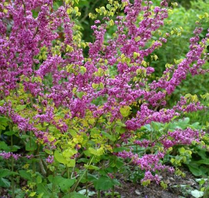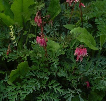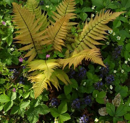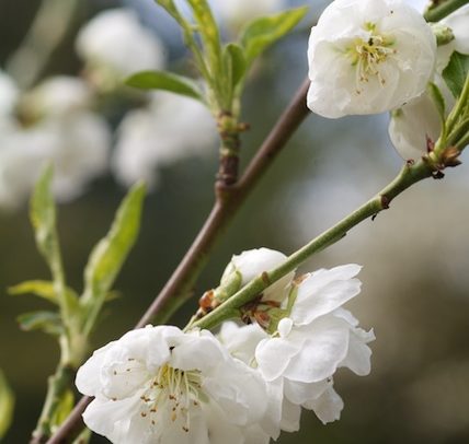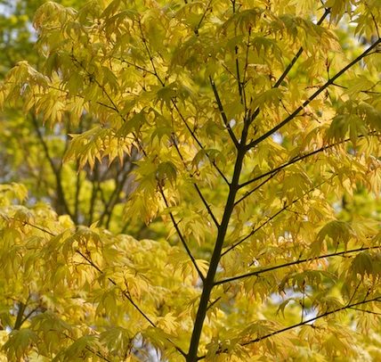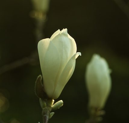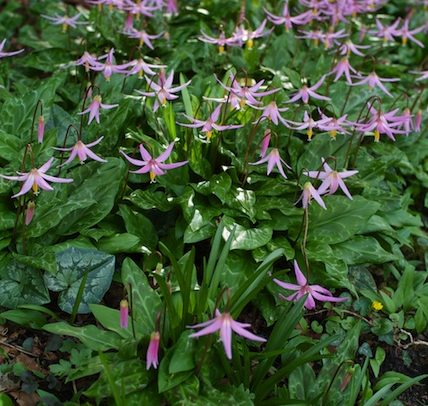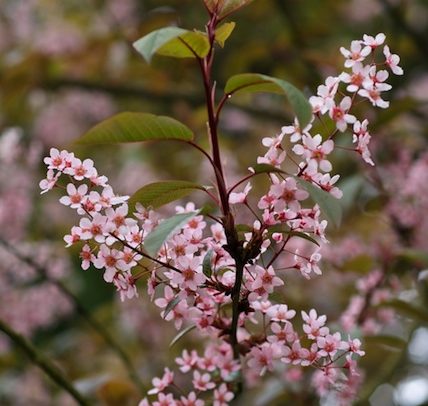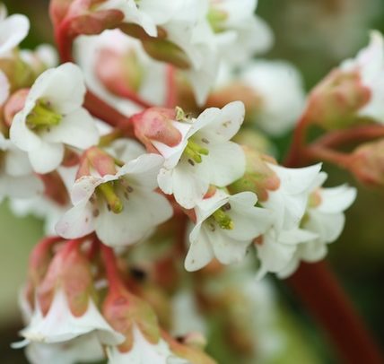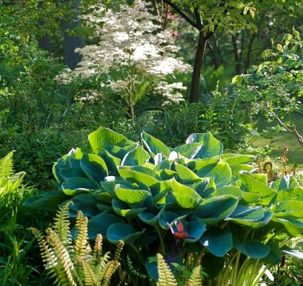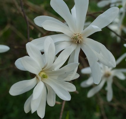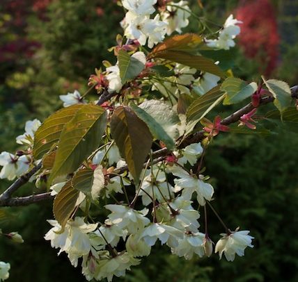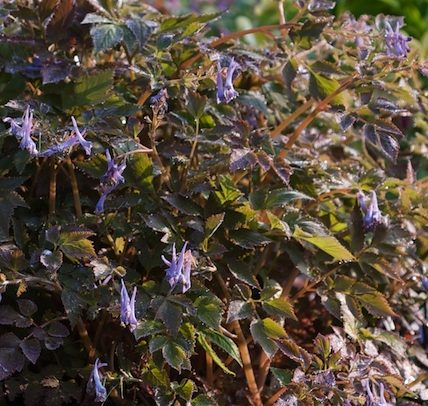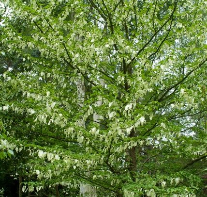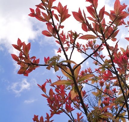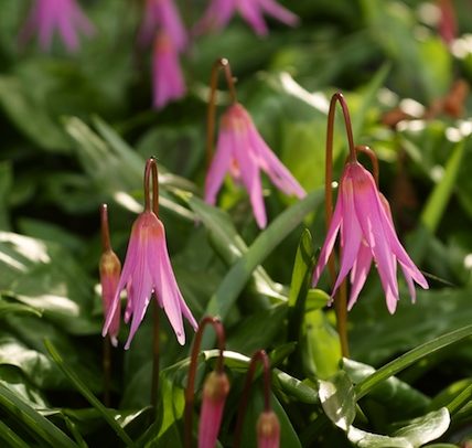 Un bois entier leur est consacré. Il y a plus de 700 sujets, certains dépassant 8 à 10 mètres de hauteur et montrant outre leur floraison spectaculaire, des graphismes de troncs et d’écorces remarquables toute l’année. Les feuillages ne sont pas en reste, surtout chez les rhodos à grandes feuilles ( R.rex, R. fictolacteum, R.hodgsonii,…) ou les couleurs d’automne des nombreuses azalées qui les accompagnent. De nombreuses haies du jardin sont constituées de rhododendrons pontiques, tous issus de semis sélectionnés par la Princesse, et tous différents. Les premiers rhodos fleurissent en décembre (‘Christmas Cheer’) et les dernières fleurs de ‘Polar Bear’ tombent fin septembre.